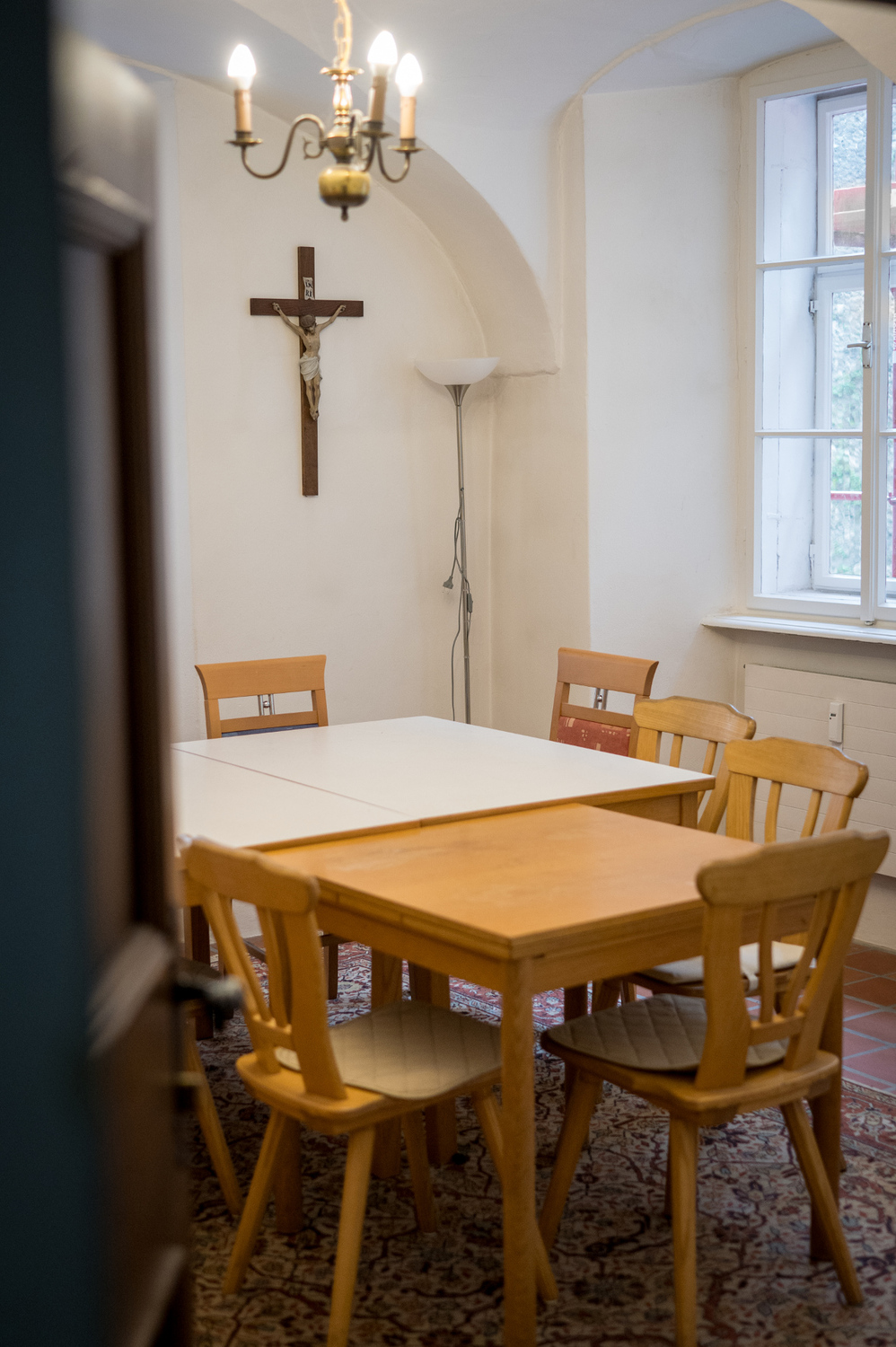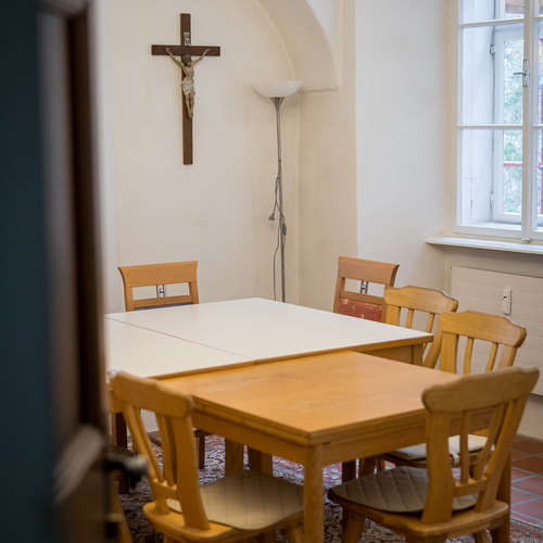 Die Erhardistube ist ein gemütlicher, kleiner Raum, ideal für Besprechungen oder kleine Gruppen. Mit ihrer warmen Atmosphäre bietet sie den perfekten Rahmen für einladende Gespräche und gemeinsame Momente.