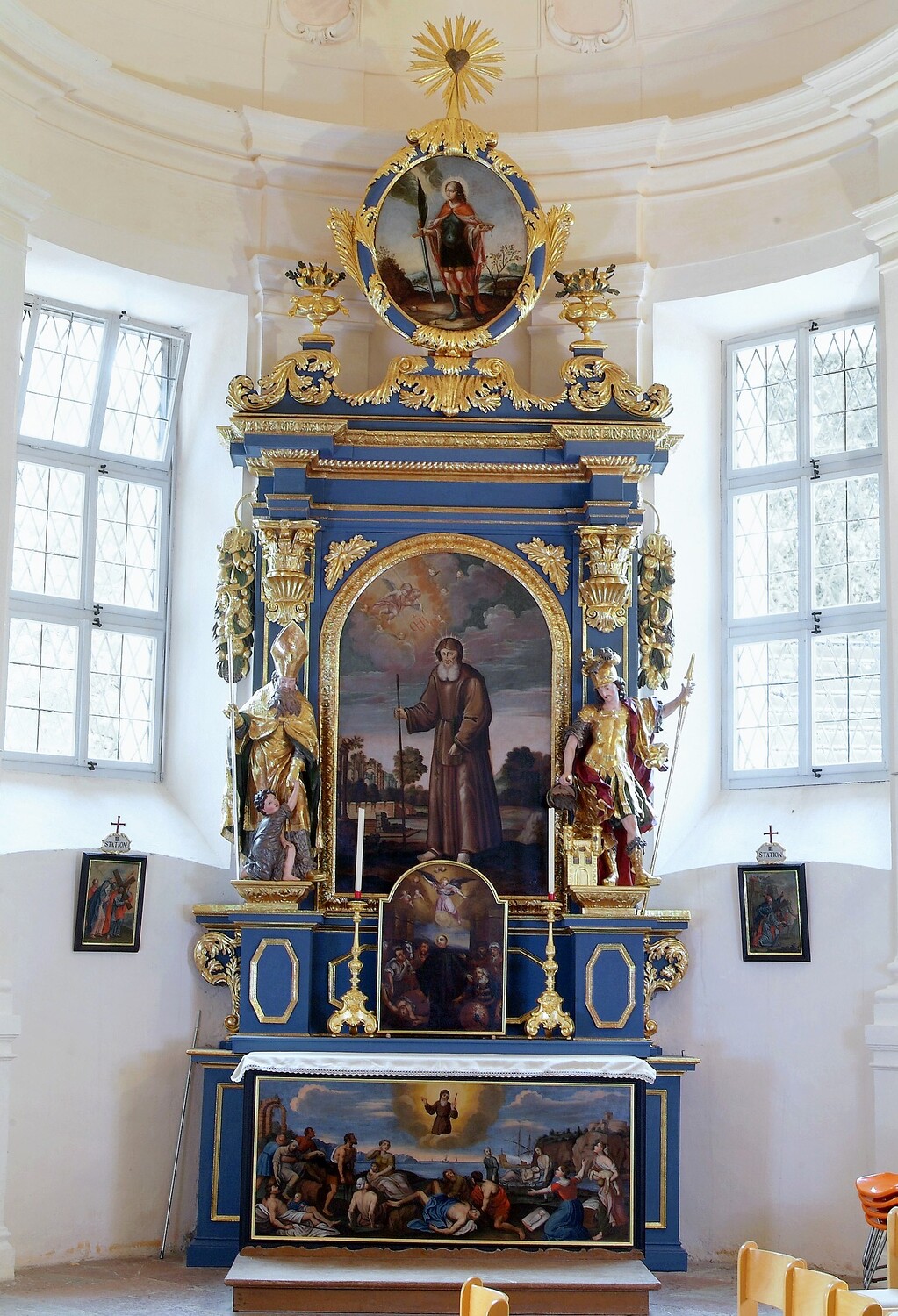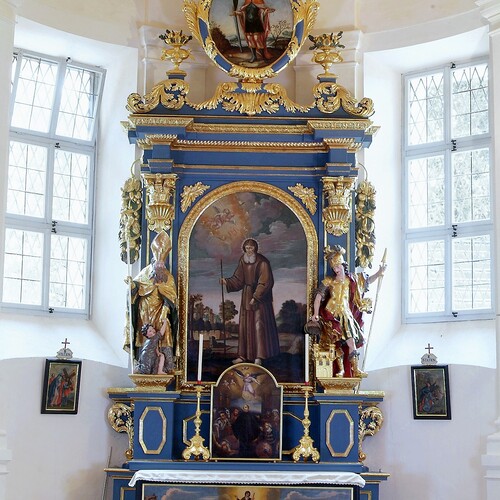 Das Altarbild des rechten Seitenaltars stellt Antonius den Einsiedler dar, das Aufsatzbild den hl. Paul. Die Statuen sind Bildnisse des hl. Valentin und des hl. Florian.