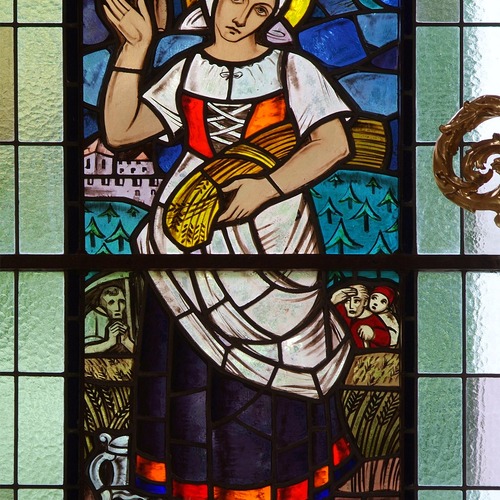 Das Altarbild des linken Seitenaltars ist eine Darstellung der Geburt Mariens, am Aufsatzbild ist der hl. Johannes zu erkennen. Die Statuen sind Bildnisse des hl. Eustachius und des hl. Georgs.